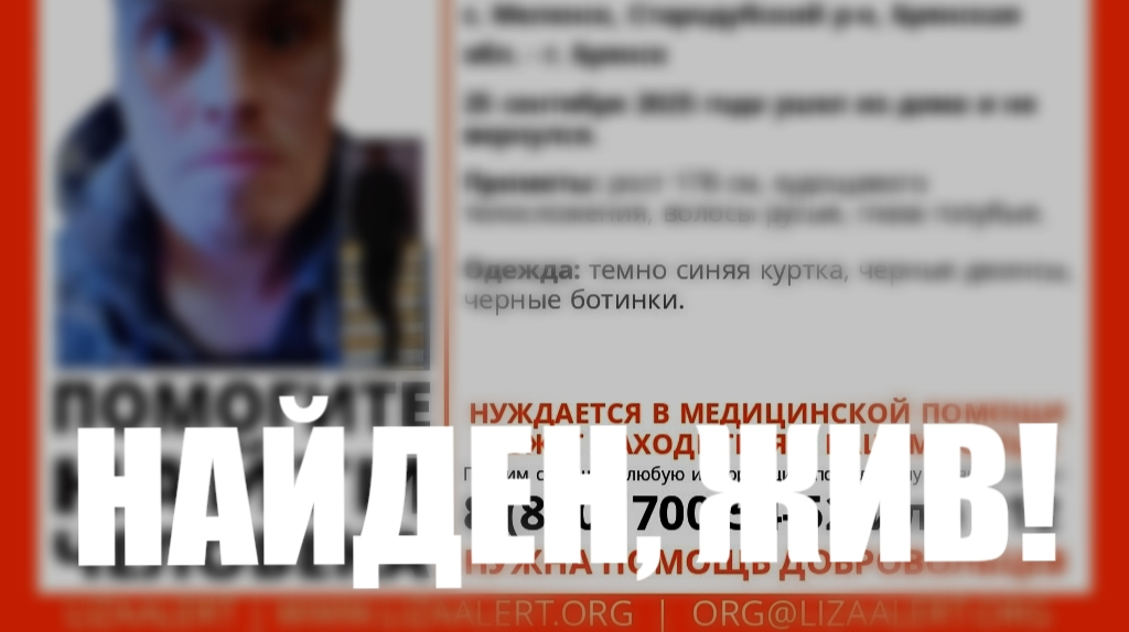 По информации поискового отряда «ЛизаАлерт», ранее пропавший Валяев Николай Алексеевич, 1988 года рождения, обнаружен живым. Мужчина ушёл из дома в селе Меленск Стародубского района 25 сентября 2025 года и до этого момента его местонахождение было неизвестно. К поискам подключались волонтёры отряда «Лиза Алерт», которые распространяли ориентировку в социальных сетях. Благодаря слаженной работе поисковых команд и неравнодушных жителей удалось быстро установить местоположение мужчины. Ранее мы сообщали, что начались поиски пропавшей пенсионерки из брянского села Домашово Надежды Финогеновой. Пропавший в Брянской области Николай Валяев найден живым