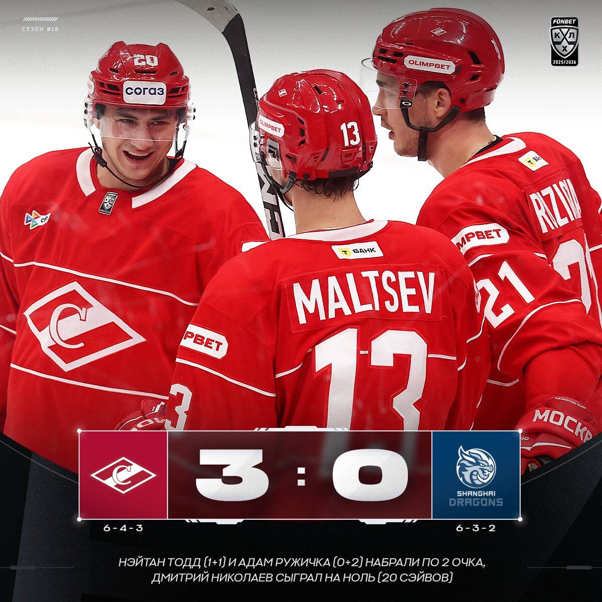 🔴 «Спартак» одержал третью в истории «сухую» победу над «Драконами»! #ФонбетКХЛ