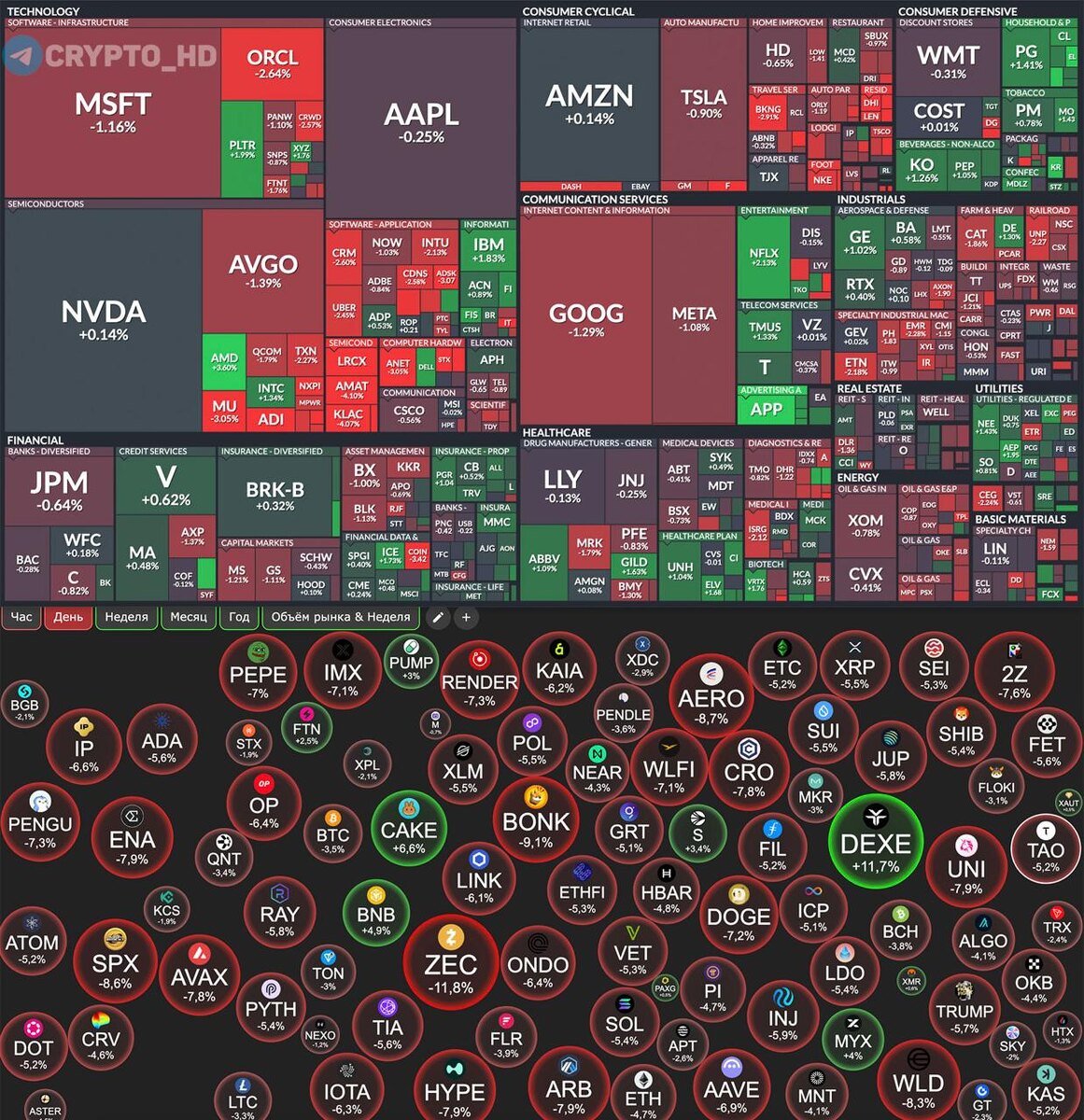 ➠ Рост индекса S&P 500 и Nasdaq затихает на фоне снижения акций Oracle – сегодня компания сообщила об операционном убытке $100m из-за аренды Nvidia Blackwell GPU.