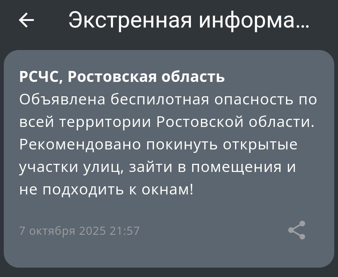 ❗️Беспилотную опасность объявили в Ростовской области