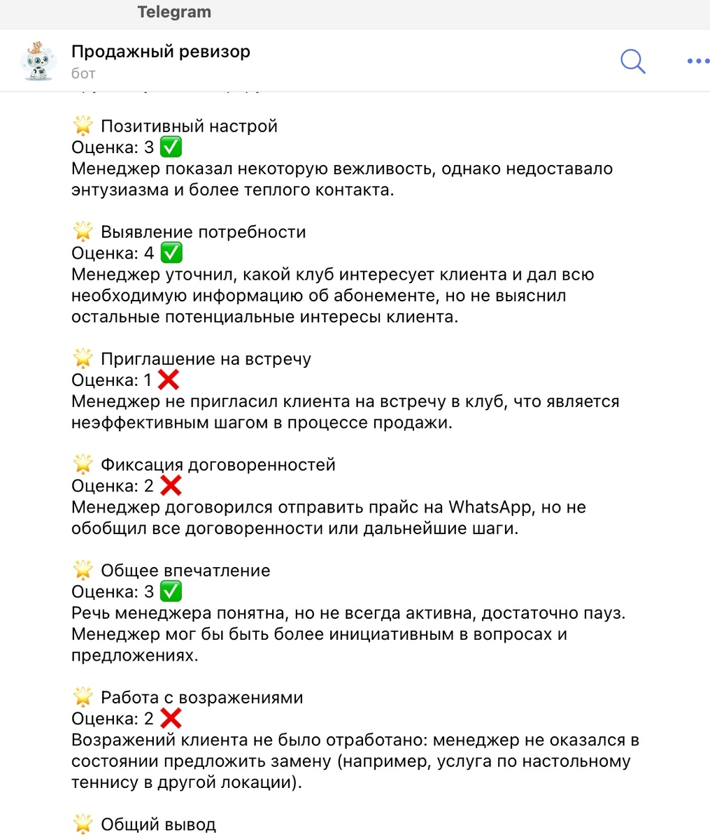 ИИ-ревизор для ОП – это бот в Телеграм, который распознает и анализирует звонки отдела продаж, чтобы выявить просадки по этапам продаж и возможности для улучшения звонков и увеличения прибыли. 🎁 Напишите в сообщения группы — бесплатно покажем как работает ревизор на вашем звонке – https://vk.me/create.marketing Основное преимущество: вам не нужно подключать специальную телефонию, проводить сложные интеграции или платить много денег. Все просто: вы загружаете звонки ОП и бот телеграм, и он через 1 минуту присылает вам полный анализ звонка. Да, все 300 звонков в день так не проверить. Но это и не надо, потому что тенденции в звонках повторяются. И достаточно периодических проверок, чтобы проанализировать основные ключевые моменты, получить рекомендации и сразу пойти их внедрять. Ревизор для ОП превращает любой звонок в чёткий и беспристрастный разбор по 8 важнейшим критериям: 📞 Поздоровался ли менеджер? 📛 Узнал имя клиента? 😄 Звучит ли позитивно? 🔍 Выявил ли потребность? 📅 Пригласи
