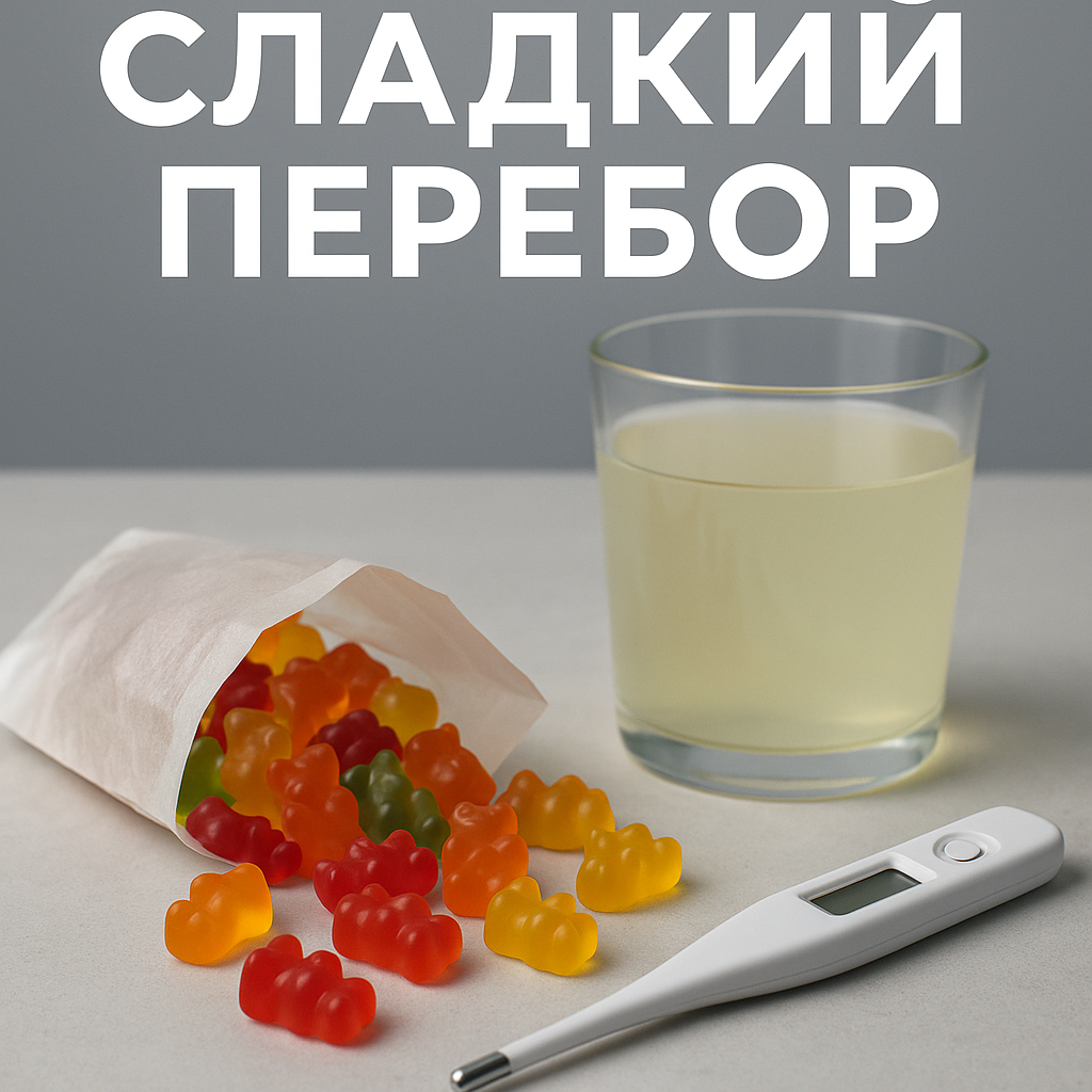 Мужчина слопал 3 килограмма мармеладных мишек за трое суток — и оказался на грани: резкая дегидратация, боли в животе, скачки сахара и электролитов. История звучит смешно, пока не понимаешь биохимию сладостей. Что произошло. Стандартные мишки — это в основном сахар/глюкозно-фруктозный сироп + желатин (≈320–340 ккал на 100 г). Три кило — это ≈9 600–10 200 ккал и >2 кг сахаров за 72 часа. Если «без сахара», то часто с сахарными спиртами (сорбит, мальтит, ксилит): они тянут воду в кишечник → осмотическая диарея, спазмы, обезвоживание, падение калия/натрия. На фоне обезвоживания и гипокалиемии возможны аритмии, слабость и обмороки. У людей с СД/ПСМ — риск гипер/гипогликемии, у чувствительных — приступ панкреатита или обострение гастрита. Мнения. Врачи-гастроэнтерологи называют «запой сладостями» классическим триггером: быстрые сахара + пололы → метеоризм, диарея, дисбаланс электролитов; у части пациентов добавляются триглицериды в кровь и пики глюкозы. Токсикологи напоминают про маркировку