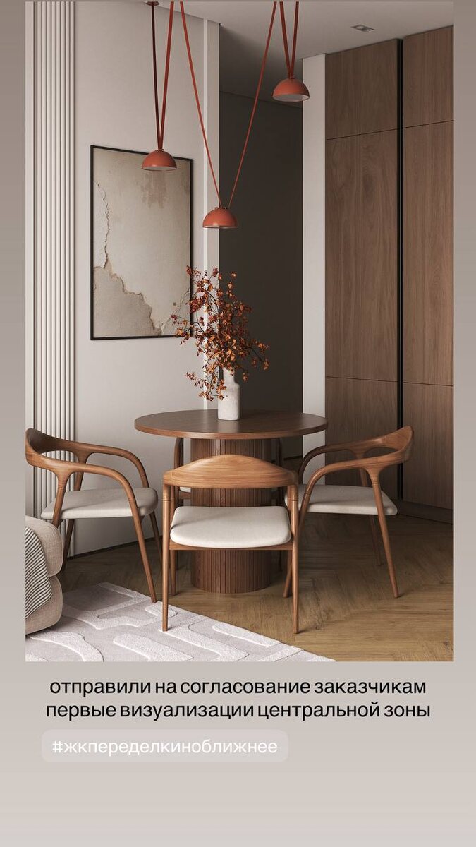 🙃 Как мы дорабатываем визуализации: от черновика до финала Визуализация — это не просто красивая картинка, а живой рабочий инструмент. Она помогает заказчику “примерить” интерьер на себя — понять, что нравится, а что хочется поменять. Вот пример, как у нас проходит этот процесс. 📍Проект: кухня-гостиная в ЖК Переделкино Ближнее 1️⃣ Первые рендеры отправили заказчикам первые визуализации — они задали общее настроение: планировка, цветовая палитра, атмосфера. Это старт. 2️⃣ Обратная связь получили комментарии — то, что захотелось заказчикам доработать/изменить (читайте в карусели) 3️⃣ Коллаж с предложениями мы собрали коллаж с обновлёнными решениями: предложили варианты подвесов над столом, поменяли TV зону, добавили деталей в кухонный гарнитур. Всё с визуализацией и пояснениями — чтобы заказчикам было легко сравнивать и выбирать. 4️⃣ Финальный рендер после согласований сделали финальные рендеры. Интерьер теперь на 100% про наших клиентов и их стиль жизни. Такой формат работ