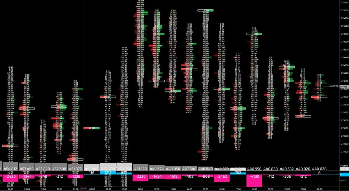 Картина маслом: Последние 19 торговых часов во фьючерсе ММВБ. Пояснительная бригада: палка - это час цифры - это количество, которое прошло (покупка/продажа) Глобально же идет борьба (баланс) покупателя с продавцом, проторговка зоны, обмен позициями Качеством получше - в комментах