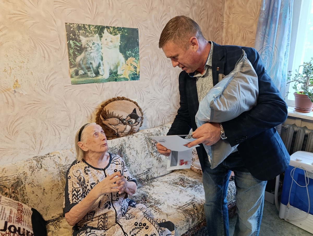 С юбилеем Евгению Александровну поздравили глава района Алексей Кононов и руководитель подразделения Комплексного центра соцобслуживания Кондопожского района Валентина Богданова, которые вручили имениннице персональное поздравление президента России Владимира Путина.