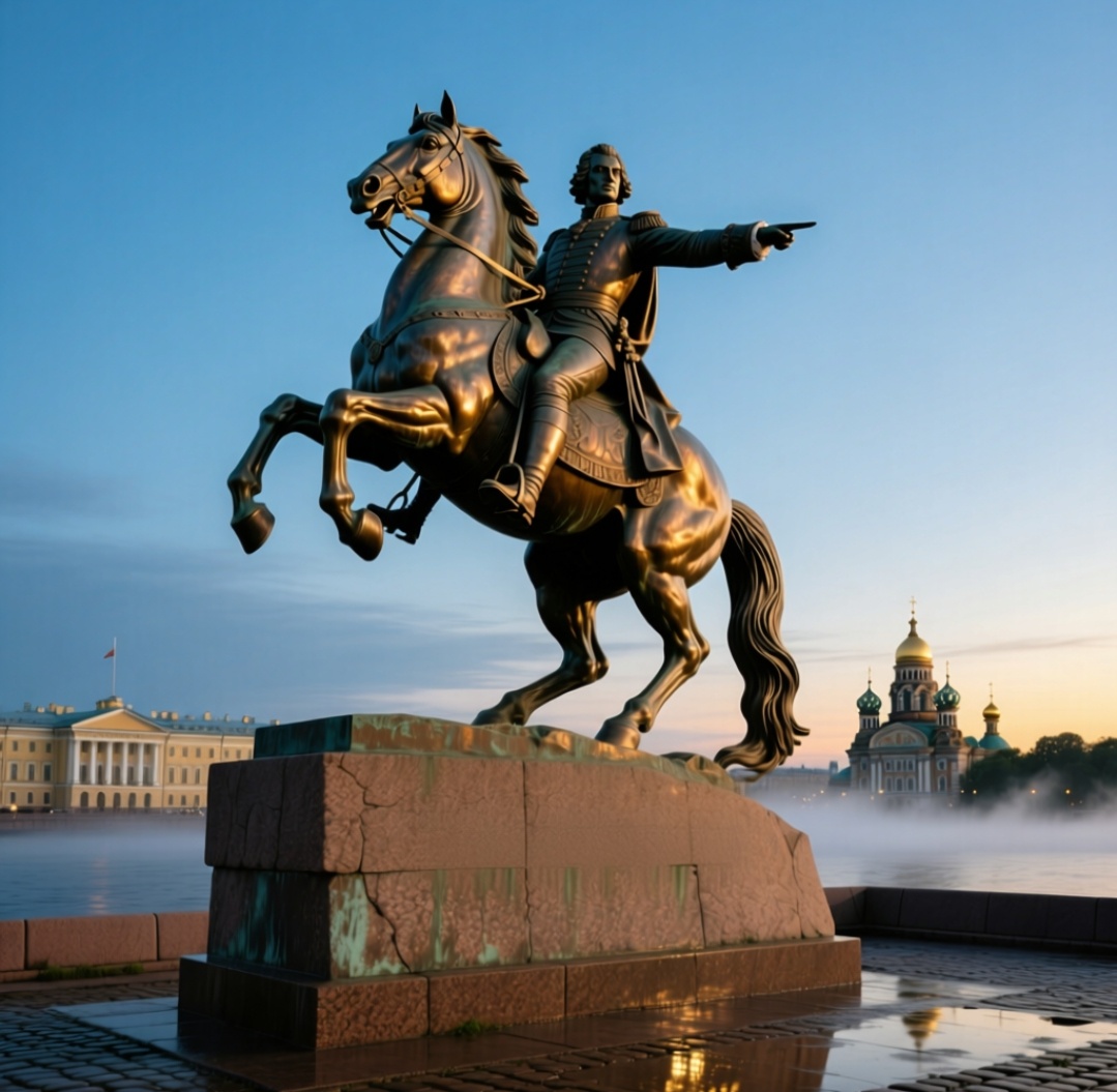 На Сенатской площади, у изгиба Невы, стоит он — Пётр I на коне, устремлённый вперёд, будто врываясь в будущее. Памятник создал французский скульптор Этьен Морис Фальконе по заказу Екатерины II. Но задумка родилась гораздо раньше — ещё при жизни самого Петра. Он мечтал, чтобы потомки помнили: город этот — его воля, его дерзновение, его вызов стихиям и времени. Когда памятник открыли в 1782 году, петербуржцы ахнули. Конь стоит на дыбах, едва касаясь земли задними копытами — опираясь на змею, что извивается под ним. Говорили, что это символ победы над врагами, над хаосом, над самой природой. Но народ, как всегда, придумал своё. Скоро по городу пошла молва: ночью Медный всадник оживает. Говорили, что в бурные ночи, когда Нева выходит из берегов, статуя срывается с постамента и скачет по городу — отыскивая тех, кто оскорбляет память Петра или предаёт дух города. Особенно пугали этим детей: «Не шуми на набережной — а то Медный всадник унесёт!» Эту легенду увековечил Александр Пушкин в