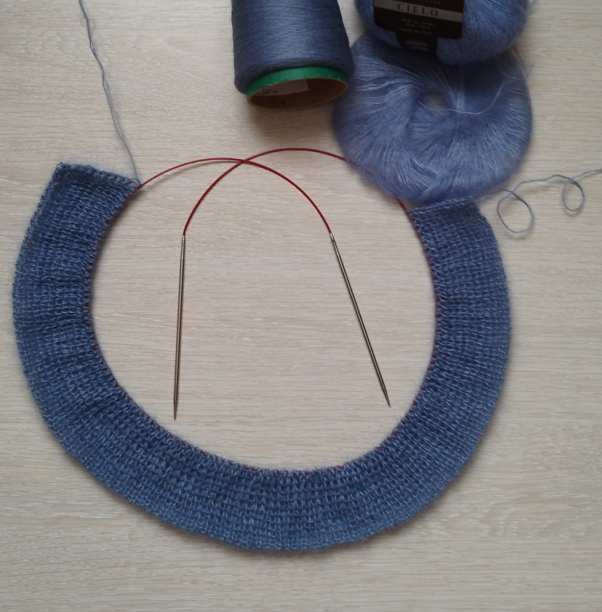 При вязании изделий из некоторых пушистых пряж нередко бывает, что петли резинки получаются неровными и не аккуратными. Чтобы решить эту проблему, для себя я нашла выход - провязать вытянутые петли по лицевой стороне резинки 1х1. Используя временный набор петель крючком вспомогательной нитью набрать на спицу половину требуемого количества петель. Рабочей нитью провязать начальный ряд следующим образом: 1 лицевая, накид, 1 лицевая, накид и т.д. В результате увеличивается набранное количество петель вдвое. 1 ряд полой резинки: кромочную снять, накид провязать лицевой петлей, петлю - снять непровязывая, нить перед работой, и т.д. до конца ряда, закончить ряд кромочной петлей, которую провязать изнаночной. 2 ряд полой резинки: кромочную снять, изнаночную петлю снять непровязывая, нить перед работой, лицевую - провязать лицевой и т.д. до конца ряда, закончить ряд кромочной (изнаночной). Таким же образом провязать 3-й и 4-й ряды. На этом этапе можно распустить временный набор, чтобы про