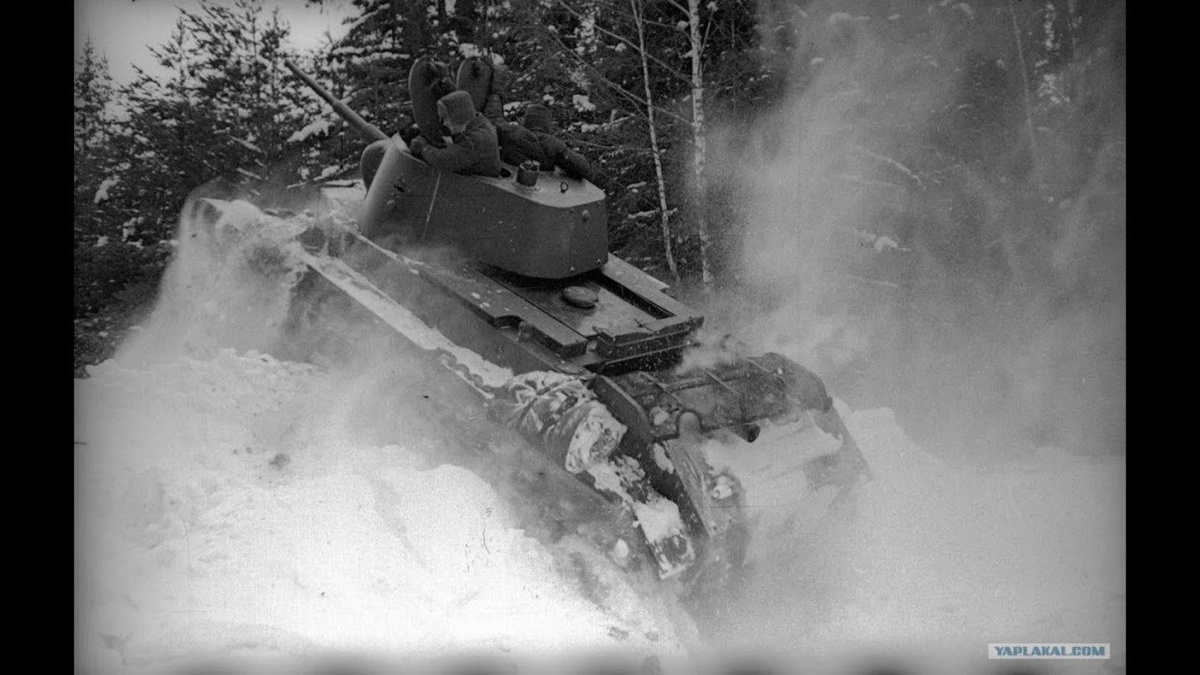 Если Т-28 был кулаком для прорыва, то БТ-7 должен был стать шашкой для глубоких рейдов по финским тылам. Но суровая реальность Зимней войны внесла свои коррективы в доктрину глубокой операции. Вместо стремительных маршей экипажи «бэтэшек» столкнулись с узкими дорогами, минами-ловушками и меткими финскими стрелками. К началу войны в танковых частях Ленинградского военного округа насчитывалось 956 танков БТ всех типов – от пулеметных БТ-2 до новейших БТ-7 с коническими башнями. Планировалось, что 10-й танковый корпус (1-я и 13-я легкотанковые бригады на БТ) совершит глубокий обходной маневр. Однако уже в первые дни выяснилось, что движение на колесах по обледенелым дорогам невозможно, а глубокий снег делал бесполезным их главное преимущество – скорость. Вся техника перешла на гусеничный ход, который в тех условиях был ненамного эффективнее. 🎯 Проходимость: Главным врагом БТ стал снег глубиной более 60 см. Танки буксовали, застревали, а их сравнительно узкие гусеницы создавали высокое