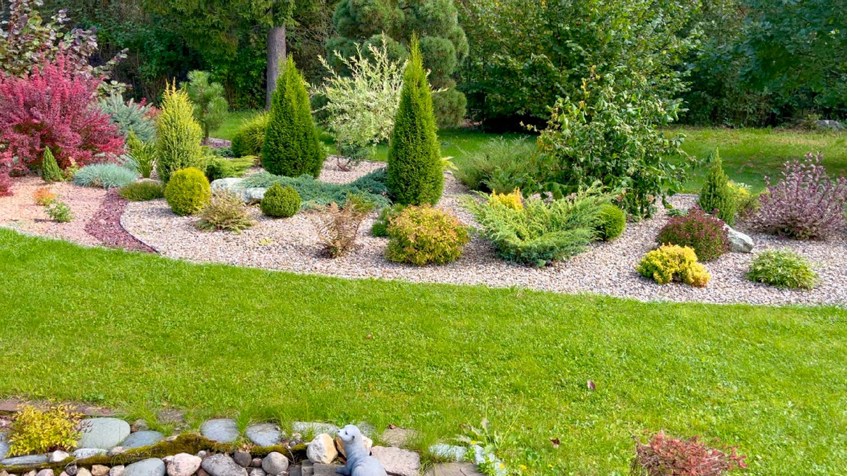 Аргументация мужа основывалась на предпочтении в пользу газона, у меня наоборот — свободной от клумб части сада было даже больше, чем достаточно. Участок не маленький, и большую часть занимал т.н. газон и на основной части сада в том числе. При этом отношение к камню в саду в разных вариациях у нас совпадало.