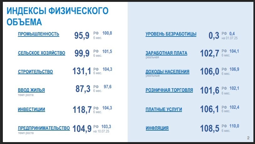 Департамент экономики Тюменской области отчитался в итогах экономического развития региона за первое полугодие 2025 г. По данным экспертов, индекс промышленного производства составил 95,9% к аналогичному периоду прошлого года. Существенное влияние на снижение индекса промышленного производства оказала отрицательная динамика в производстве кокса и нефтепродуктов, пищевых продуктов, резиновых и пластмассовых изделий, а также химических веществ и химических продуктов, — отметили в департаменте. Зато заметно выросло производство различных машин и оборудования, а также текстильных изделий. Положительная динамика наблюдается в выпуске лекарств, напитков, электронных и оптических изделий. Сельское хозяйство едва не дотянуло до показателей первого полугодия 2024 г., составив 99,9%. При этом за шесть месяцев текущего года мяса произведено было 93,2%, а молока — 96,1% к аналогичному периоду прошлого года. А вот выпуск яйца оказался рекордно высоким (114,2%), что тюменцы могли заметить по снизивш