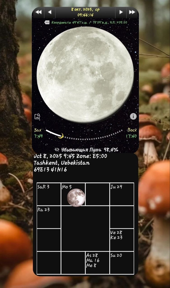 🍃🌜08.10.2025.🌛🍃 Ведическая Астрология Убывающая Луна в Овне. РетроСатурн. 🌜☹️Луна выныривает из томных Рыб и сразу попадает в горячего Овна, что для нее не очень комфортно. В Овне она горяча и бешена, норовит закрутить нас в водовороте дел и насущных задач. Энергии этого дня достаточно беспокойны, но сил решить возникшие вопросы у нас с вами хватит, если делать всё последовательно и не устраивать вокруг себя суету. 🌜🙃В первой половине дня не поддавайтесь этому вихрю эмоций. Луна чуть поспорит с Меркурием о правде и справедливости и понять, кто прав можно лишь обратившись к совести(если она, конечно еще не впала в спячку). Совесть -это один из Его голосов в нашем сердце, который не позволяет нам сворачивать в темноту страданий. Девиз дня: Ночь темнее всего перед рассветом. Бенджамин Дизраэли Хорошего вам дня 🙌 берегите себя и близких🙏 © с уважением, Юля ☀️