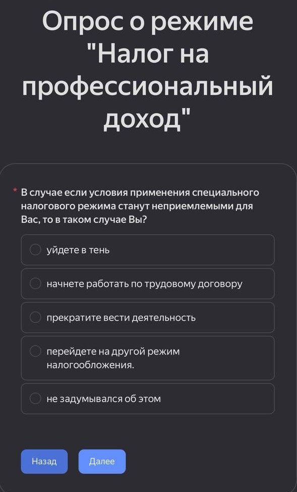 В анкете есть провокационный пункт — «уйти в тень».