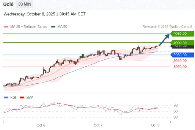 Золото обновило исторический максимум, пробив уровень $4000 в рамках сильного бычьего тренда