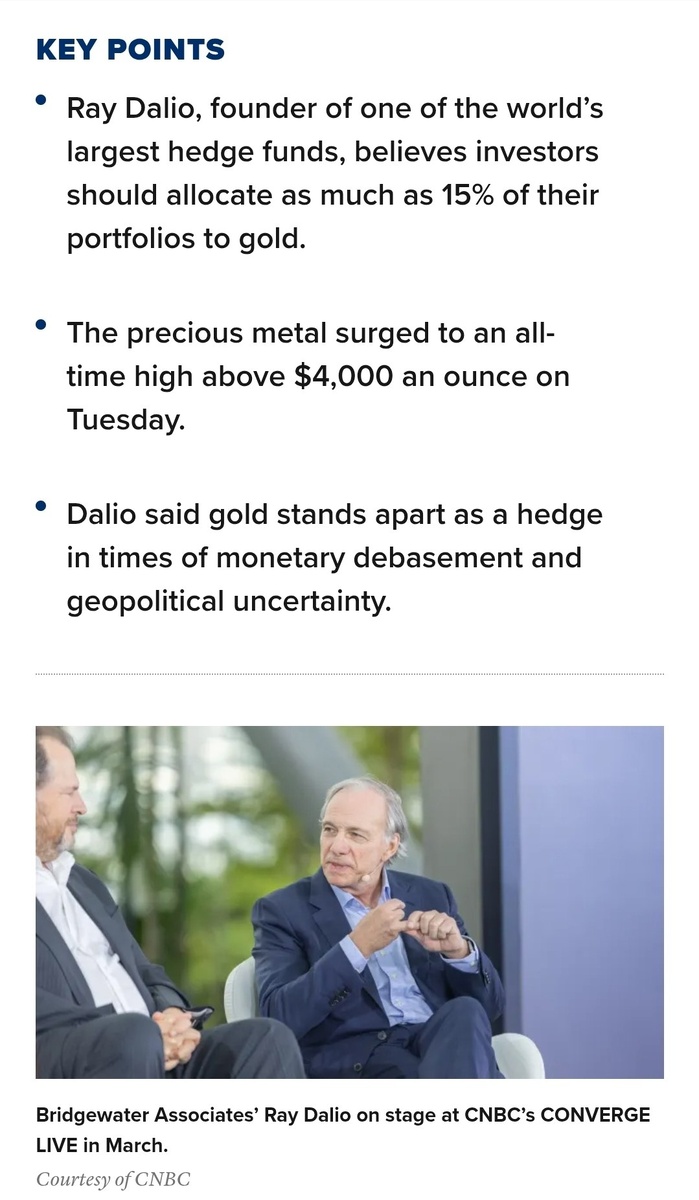Все признаки безумия и эйфории имеются. Золотая лихорадка мирового масштаба💰 "Вы обязаны купить золото". У них. Иначе не об кого закрываться. Сентимент - на каждой странице уже неделю про золото Gold, а старик Далио вновь засаживает 🐹 в золото по ценам 4000+ usd. Розница потребляет это высокими темпами - рекордный прирост в золотые ETF, в сентябре принесли еще +17,3 млрд.баксов. Обратите внимание, что при росте в тренде такого почти никогда не бывает. Ну а Далио тот еще мерзавец и пампер известный, конечно же 🤡 Про Bitcoin как бы почти тишина при этом.