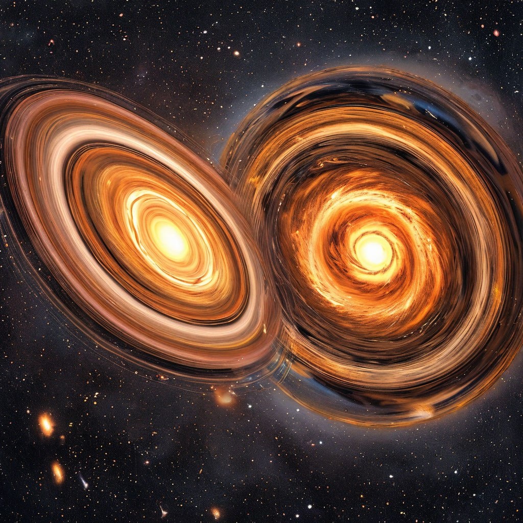 В статье представлено первое трёхмерное моделирование, которое описывает эволюцию сверхмассивной двойной чёрной дыры с несовпадающими осями вращения, окружённой аккреционным диском. Моделирование охватывает этапы от позднего сближения до слияния и последующего отбрасывания чёрной дыры. Результаты показывают, что после слияния чёрная дыра получает мощный импульс отдачи и сохраняет окружающий её аккреционный диск, который остаётся самым ярким объектом после слияния и может быть наблюдаем современными телескопами.