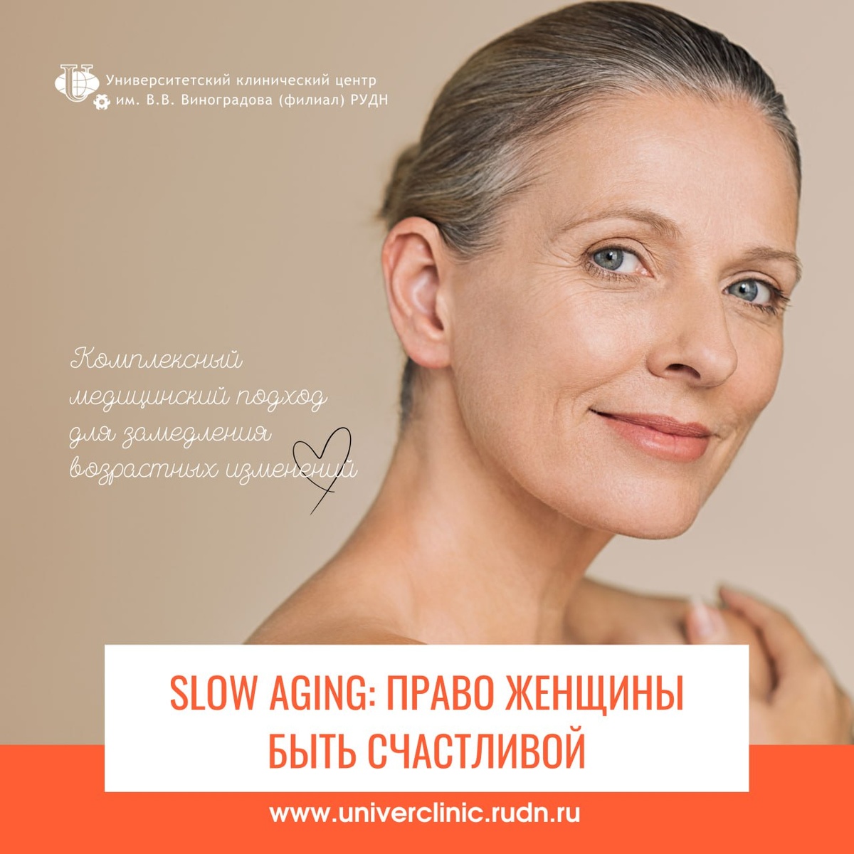 Slow Aging: право женщины на комфортную жизнь в любом возрасте Современная гинекология давно вышла за рамки исключительно лечения заболеваний. Сегодня в центре внимания - сохранение качества жизни в любом возрасте. В гинекологическом отделении Университетского клинического центра им. В.В. Виноградова (филиал) РУДН внедрено новое направление - Slow Aging для замедления возрастных изменений, профилактики заболеваний и поддержания женского здоровья после 40-50 лет. Что же такое Slow Aging в гинекологии? Это не «омоложение» в косметическом понимании, а комплексный медицинский подход: ✔️ранняя диагностика и профилактика гинекологических заболеваний, характерных для женщин зрелого возраста; ✔️коррекция гормонального фона и поддержка метаболических процессов с учётом индивидуальных особенностей; ✔️органосохраняющие хирургические технологии при миоме матки, эндометриозе, доброкачественных опухолях яичников; ✔️современные методы лечения пролапса тазовых органов и недержания мочи, восстанавли