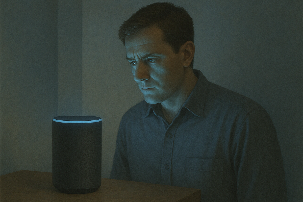 Утром, как обычно, зашёл на кухню, сказал: “Включи новости.” Колонка загорелась голубым кольцом и спокойно ответила: «С возвращением, Артём.»