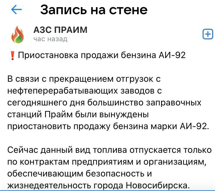 18+ НАСТОЯЩИЙ МАТЕРИАЛ (ИНФОРМАЦИЯ) ПРОИЗВЕДЁН, РАСПРОСТРАНЕН И (ИЛИ) НАПРАВЛЕН ИНОСТРАННЫМ АГЕНТОМ КАВЕРЗИНОЙ СВЕТЛАНОЙ ВИКТОРОВНОЙ ЛИБО КАСАЕТСЯ ДЕЯТЕЛЬНОСТИ ИНОСТРАННОГО АГЕНТА КАВЕРЗИНОЙ СВЕТЛАНЫ ВИКТОРОВНЫ* * номер в списке Минюста 777 Ну вот и до Новосибирска дошло. В Советском районе заправка Прайм на пересечении Бердского шоссе и ул. Русской