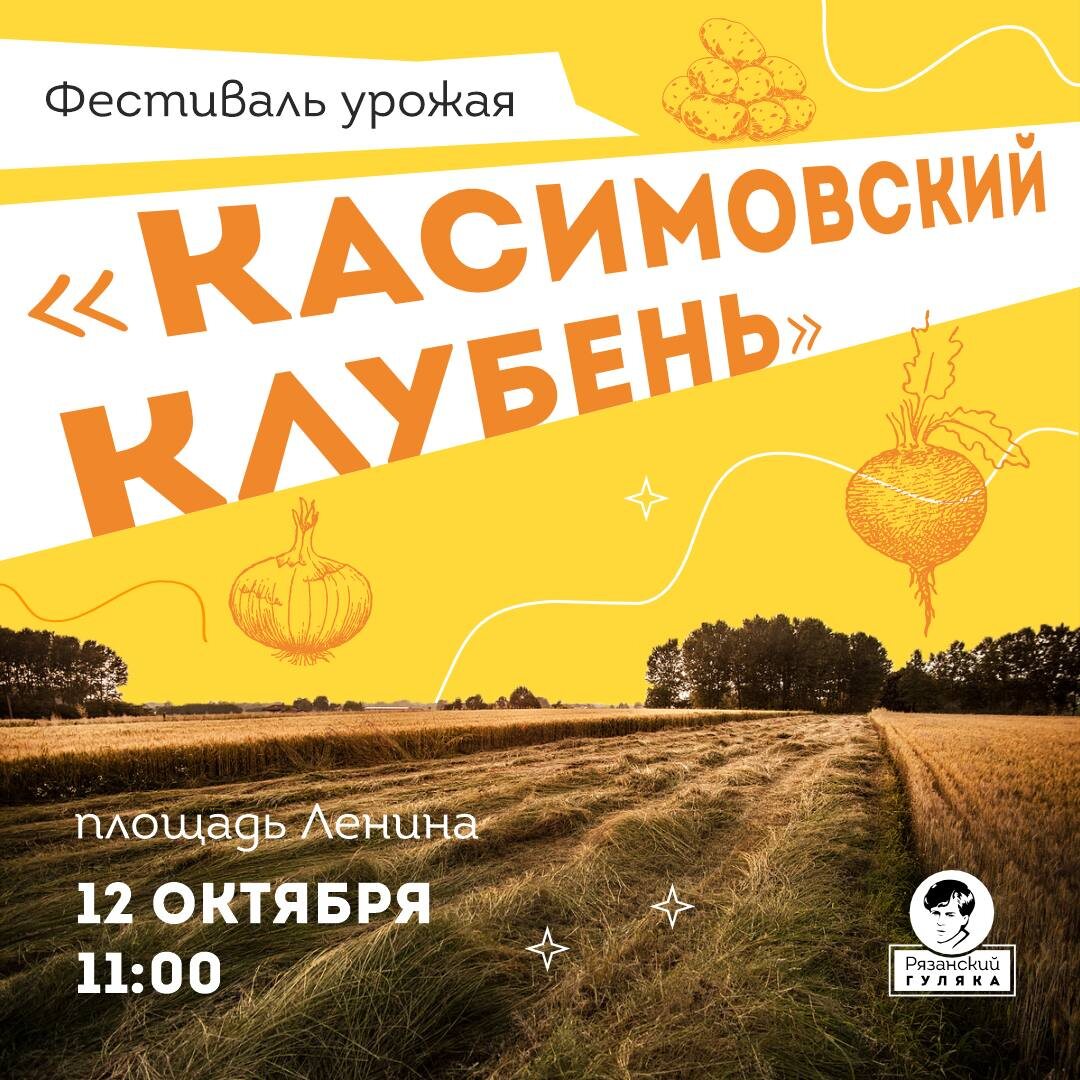 🥔 В Касимов на фестиваль урожая. Да не абы какого! Когда: 12 октября с 11:00 Где: площадь Ленина Что будет: «Касимовский клубень» — традиционный праздник урожая. Душевный и вкусный. Будет концерт, конкурсы за звание чемпиона с самым большим клубнем или самой необычной грядки (интересно понаблюдать, кто победит 😏), ярмарка, выставка сельхозтехники, домашних животных и птиц. Делитесь анонсом с друзьями и до встречи на празднике🙏 #гуляка_фестиваль 🤩 Рязанский гуляка