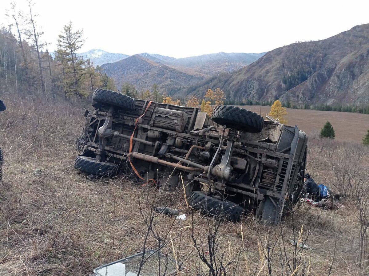 В Усть-Коксинском районе Республики Алтай на перевале Кузуяк опрокинулся автомобиль ГАЗ-66