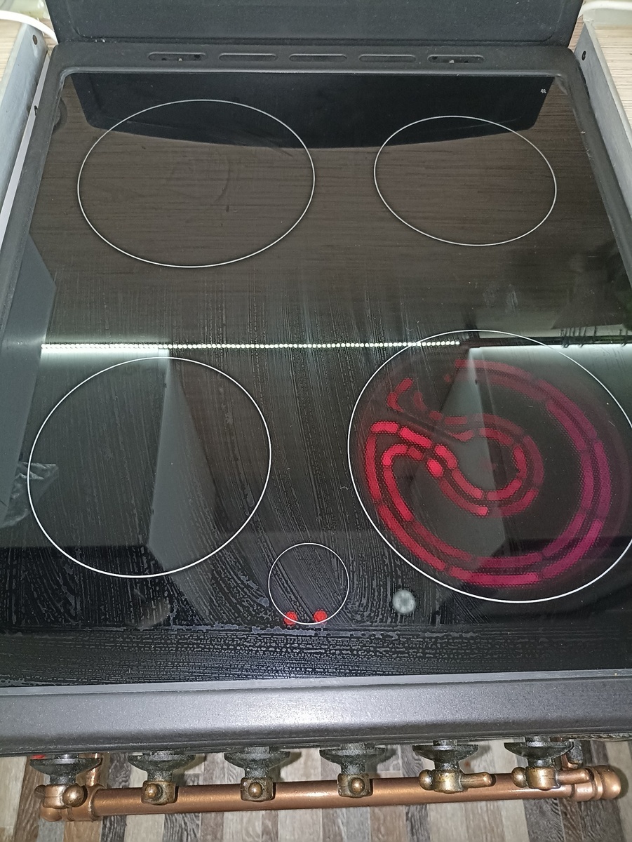 Как показывает практика, стеклокерамическая плита хоть и выглядит стильно и мыть её удобно, но стеклянная поверхность явне слабое место данной категории плит. Если судить по объявлениям на Авито, то практически все б/у плиты продаются с треснутыми поверхностями. Ну и мы, как не пытались бережно и аккуратно пользоваться плитой, но трещины сами собой начали появляться через пару лет эксплуатации плиты. Сначала одна, потом ещё ... В конечном итоге почти вся поверхность покрылась трещинами. При этом, трещины хоть и сквозные, но до конца стекло не рассыпается. Выдерживает даже 20-и литровые кастрюли. Но всё равно, даже не смотря на относительную работоспособность когда то нужно было поменять это безобразие. Созрел морально для замены через 5 лет эксплуатации. Заменил бы и раньше, но цены на стеклянную поверхность нереальные. Начали выбирать на маркетплейсе и оказалось, что кусочек закаленного стекла в рамке продают от 20 до 75 тыс. Это при том, что плита была когда то куплена за 17 тыс. и