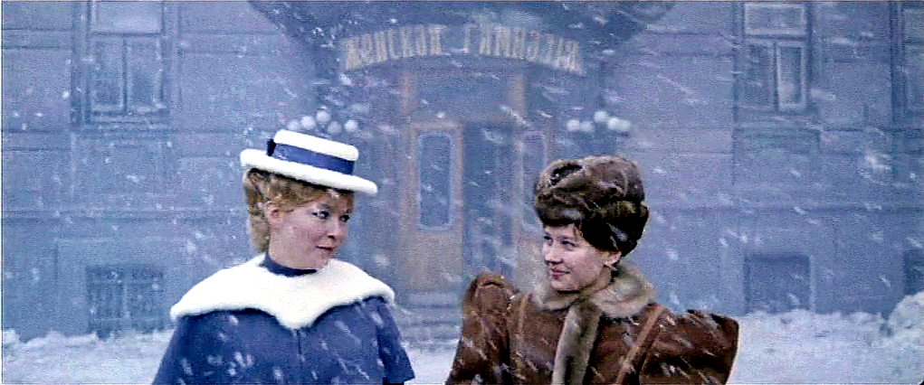 Вот первое появление Марины Владимировны на экране. Две учительницы частной гимназии Лика Мизинова и Мария Чехова. Маша зовёт Лику к себе в гости, хочет познакомить с братом.