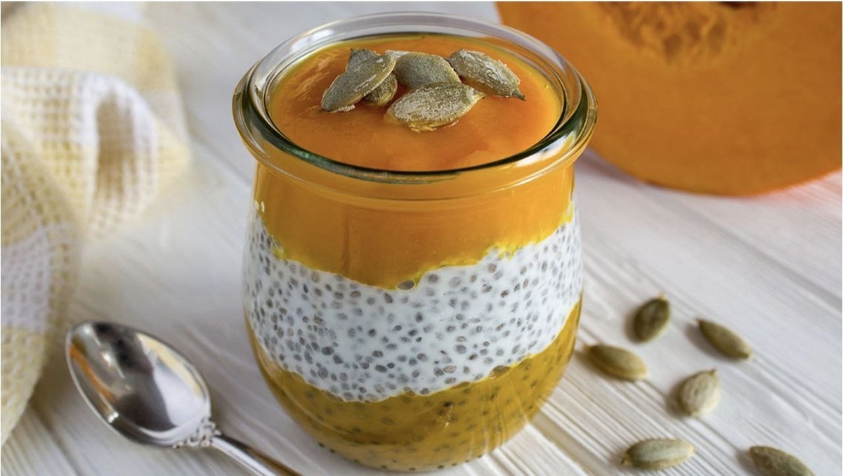 Пример полезного и лёгкого завтрака с содержанием каротина! # Рецепт пудинга с тыквой и семенами чиа ## Ингредиенты: - Тыква свежая или консервированная — ½ стакана - Семена чиа — 3 ст.л. - Молоко миндальное или кокосовое — ¾ стакана - Мед или сироп агавы — 1 ст.л. - Корица молотая — щепотка - Ванильный экстракт — ¼ ч.л. - Щепотка соли ## Инструкция приготовления: ### Шаг 1: Подготовка ингредиентов 1. Если используете свежую тыкву, очистите её от кожуры и семян, затем нарежьте кубиками и отварите до мягкости. После остывания измельчите тыкву блендером до пюреобразного состояния. 2. Если используете консервированную тыкву, пропустите этот шаг. ### Шаг 2: Смешивание ингредиентов 1. В миску добавьте семена чиа, молоко, мёд/сироп агавы, корицу, ванильный экстракт и соль. 2. Тщательно перемешайте смесь ложкой или венчиком. ### Шаг 3: Добавление тыквы 1. Добавьте подготовленную тыкву в миску с семечками чиа и снова хорошо перемешайте. ### Шаг 4: Настаивание 1. Накройте миску крыш