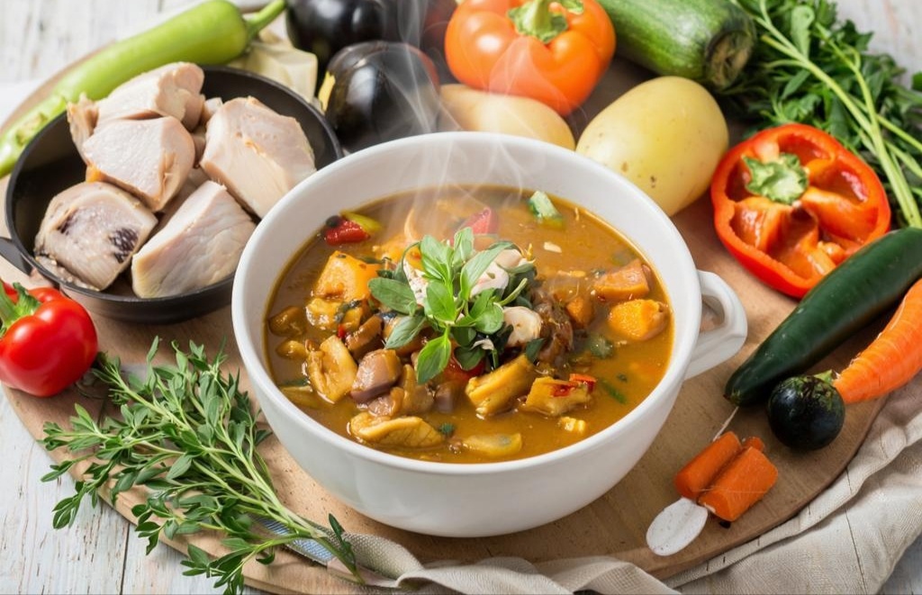 Диетическое овощное рагу с куриной грудкой Доброго дня и ночи дорогие друзья🤗 Овощные блюда являются основой многих диетических рационов благодаря низкому содержанию калорий и высокой питательной ценности. Овощи содержат большое количество витаминов, минералов и клетчатки, что способствует улучшению пищеварения и поддержанию нормального веса тела. Одним из таких блюд является овощное рагу с добавлением курицы, которое обладает всеми необходимыми качествами для сбалансированного питания. Для приготовления диетического овощного рагу потребуется следующий набор ингредиентов: Куриная грудка (200 г) Кабачки (150 г) Болгарский перец (1 шт.) Помидоры свежие или томатная паста (по вкусу) Морковь (1 средняя штука) Лук репчатый (1 небольшая головка) Чеснок (1 зубчик) Соль, специи по вкусу Оливковое масло (1 столовая ложка) Приготовление блюда включает несколько этапов: Подготовка мяса Куриную грудку необходимо промыть под проточной водой, обсушить бумажным полотенцем и нарезать небольшими кус