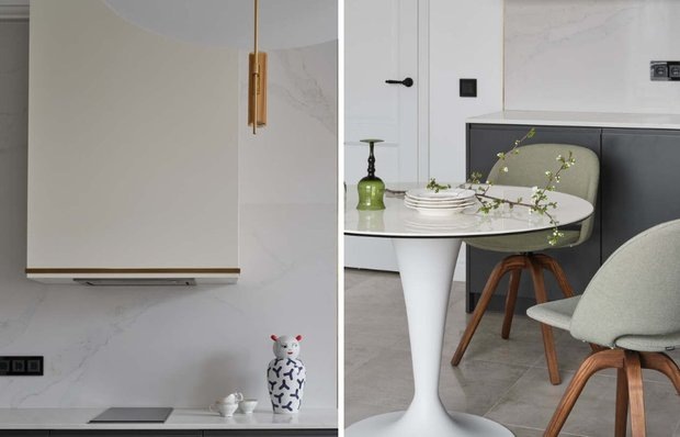 Дизайнер Лина Князева из Knyazeva Design Studio в своем проекте опиралась на неоклассические европейские референсы и стремилась создать интерьер, где каждая деталь будет работать на общую идею «уголка Европы». Кухня здесь получилась современной и продуманной до мелочей.