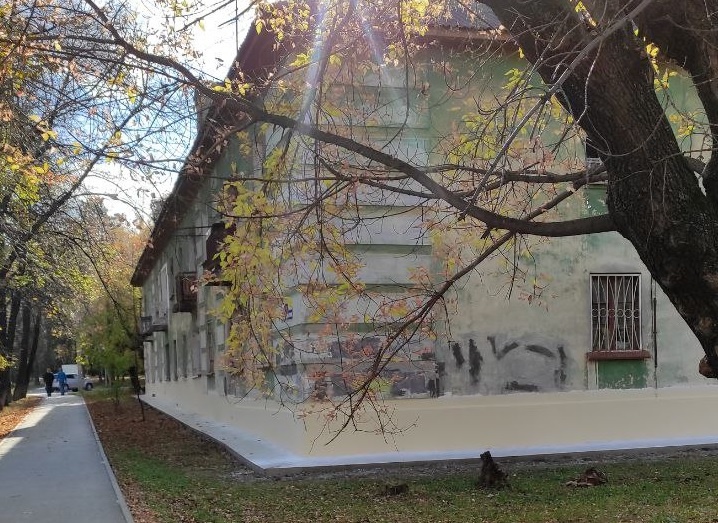 Сейчас видно, что у дома крутятся рабочие. Цоколь уже заиграл новыми красками.