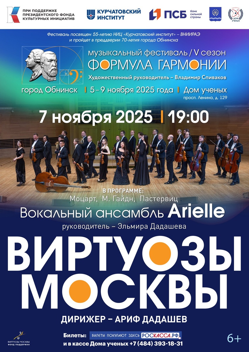 🎶7 ноября в 19:00 в Доме учёных в Обнинске состоится совместный концерт камерного оркестра «Виртуозы Москвы» и вокального ансамбля