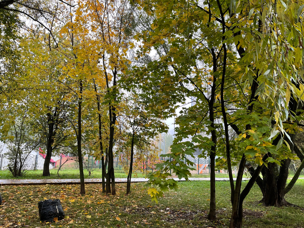 8 октября 2025, среда Осень незаметно из зелёной стала жёлтой и похорошела. Живописность у неё не отнять. Но от осени я ничего хорошего никогда не жду. Вечно подвохи, обманы, то мороз нежданно хлопнет ночью, то дожди грязь разведут. И одежда требуется разная, и обувь - всё в угоду ей, изменчивой, требовательной осени. Благодаря созданному скверу мы теперь любуемся красками осени, не обляпываясь и не пачкая обувь. По чистым широким дорожкам гуляем. Хоть некоторые плиточные дорожки морозов и не выдерживают, высыпаются и подводят. Но это мелочи, дворники эти огрехи латают, исправляют. Между двумя нашими улицами сделали ещё один большущий сквер и назвали его пафосно: Сквер олимпийских чемпионов. Намек на выстроенный там же Ледовый дворец, он же Центр фигурного катания Этери Тутберидзе. Не могли сквер уж как-то по-человечески назвать, душевнее. И покороче. Например, Кленовый сквер. Там клёны высадили красиво, с чередованием: жёлтый-красный. Нарядно. Или просто - Ясеневский сквер. Всем