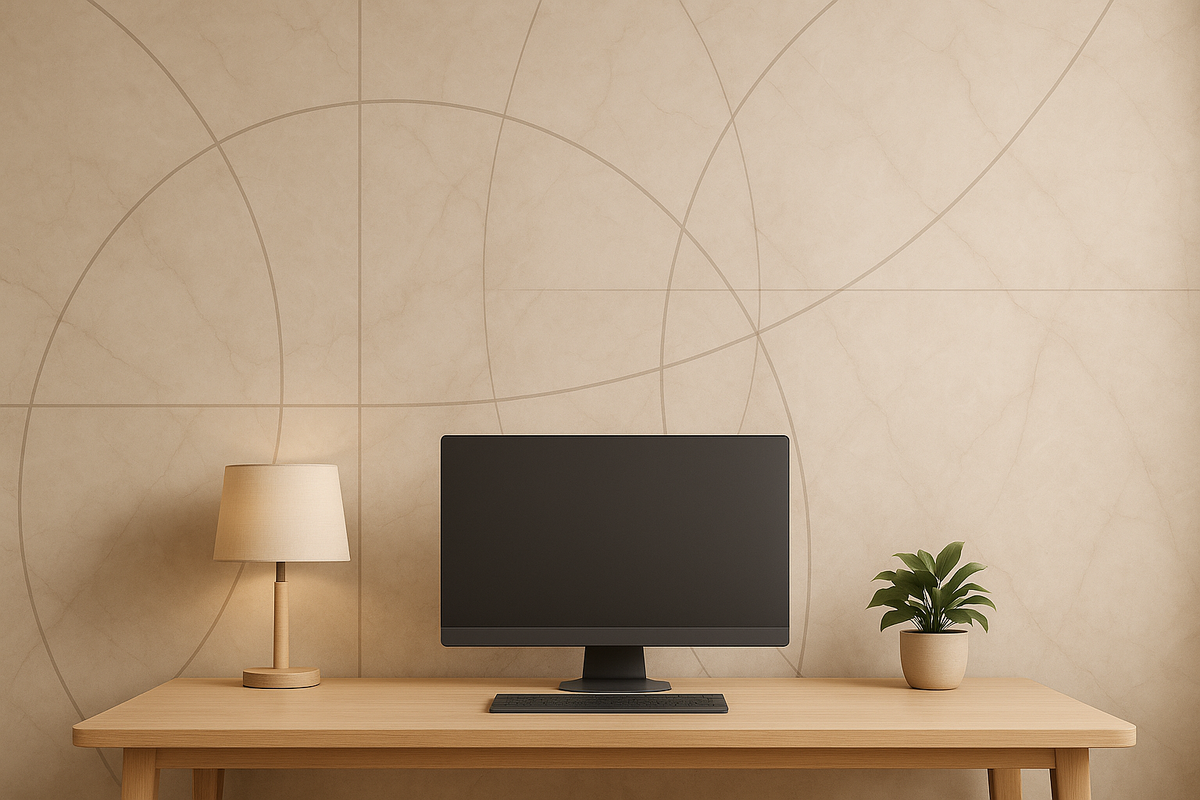 Живой минимализм строится на одной фактуре и одной геометрии, грамотном масштабе и матовом свете. Бесшовная фреска под мрамор/бетон даёт чистый фон без стыков, линии и свет добавляют глубину — без перегруза и «декоративного шума».