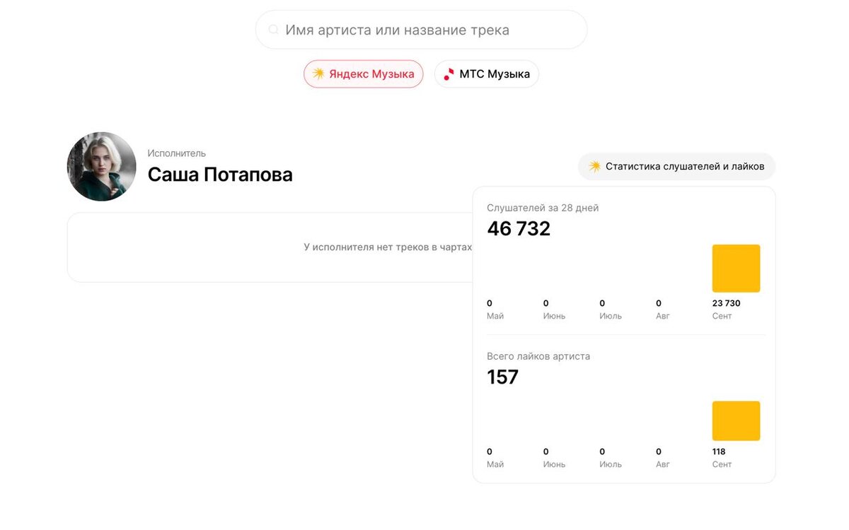 46 732 прослушивания - с первого трека. На скрине артистка Саша Потапова, которая пришла к нам на Релиз под ключ со своим самым первым треком. Саша хотела остаться инкогнито - без лица, без привычного «образа артистки». Поэтому вместе мы продумали концепцию и позиционирование: как выстроить проект, если вокалистка не хочет показывать себя. ✅Мы открыли соцсети, упаковали, продумали стратегию продвижения, выложили релиз. И даже без попадания в плейлисты Яндекс.Музыки трек за две недели собрал 46 732 слушателя. И это только начало. Судя по динамике, уверены, до конца года проект пробьёт планку в 200 000. Музыку слушают, когда в ней есть честность и идея. И если подойти к релизу системно, даже первый трек может выстрелить. ================================== 📆 Напоминаю: уже сегодня в 19:00 по Москве вебинар «Как правильно питчить трек и попасть в плейлисты в 2025 году» 🎁 Всем участникам подарок: личная консультация от Ольги Солдатовой (30 минут). Чтобы зарегистрироваться? напиш