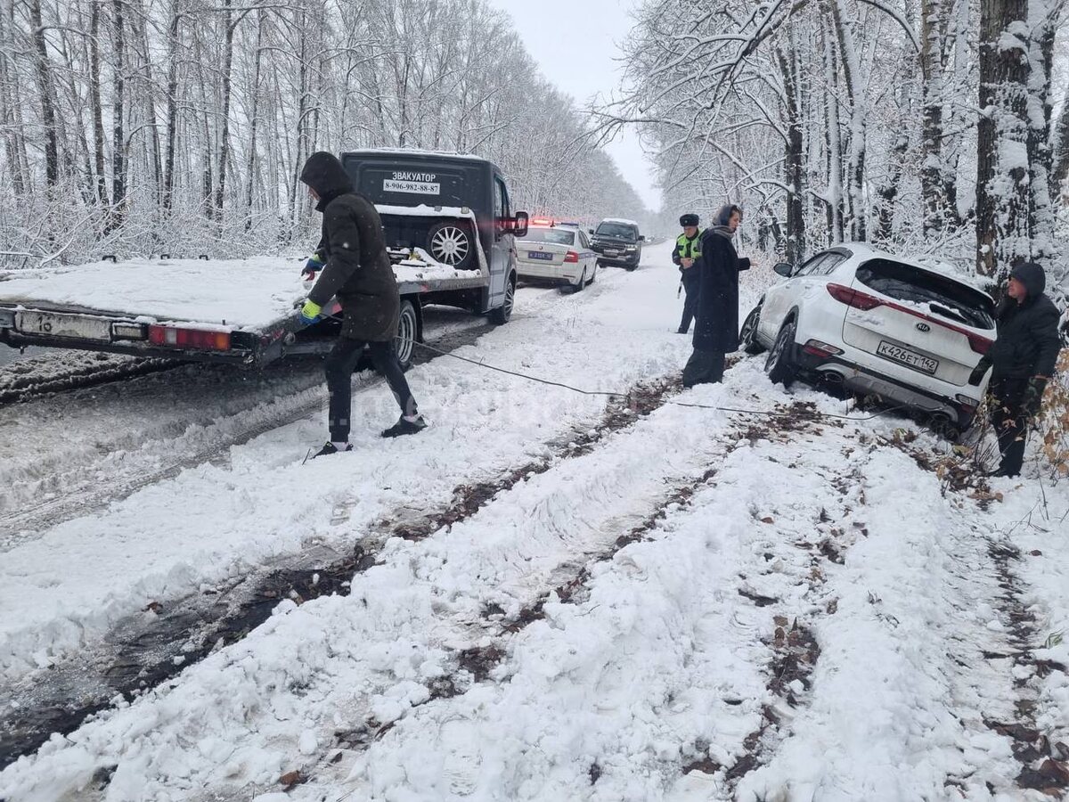 В Ленинске-Кузнецком муниципальном округе сотрудники Госавтоинспекции оказали помощь слетевшей в кювет автолюбительнице 🚔Находясь на маршруте патрулирования автоинспекторы на автодороге «Ленинск-Кузнецкий – Полысаево» обратили внимание на слетевший с дороги автомобиль «Киа Спортэйдж». 🤩Полицейские остановились, чтобы помочь водителю, и выяснили, что женщина не справилась с управлением на скользкой дороге, и ее автомобиль выехал за пределы проезжей части. В результате происшествия автомобилистка не пострадала. Самостоятельные попытки выбраться на дорогу не увенчались успехом. Для оказания помощи инспекторы привлекли спецтехнику и при помощи троса автомобиль вернули на проезжую часть. ♥️Автолюбительница поблагодарила полицейских за своевременную помощь и продолжила путь, пообещав соблюдать необходимые меры безопасности при сложных погодных условиях. 📱Если вы попали в затруднительную ситуацию на дороге и вам необходима помощь, сообщите об этом в дежурную часть Госавтоинспекции Куз