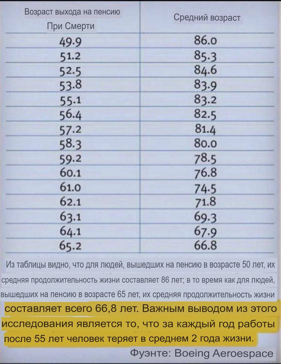 Еще одна причина инвестировать👇 Каждый год работы после 55 лет будет забирать у вас 2 года жизни. Страшная статистика, правда? И это не просто слова, чтобы запугать людей, а данные исследования Boeing Aerospace. Согласно исследованию, уход на пенсию в 50 лет дает в среднем дожить до 86 лет. Задерживаясь на работе до 65 лет, можно прожить лишь до 66,8 лет. Понятно, что все это усредненные данные, но логика в них есть. Работа — это постоянный стресс, трата здоровья, времени. Те, кто верно и безропотно идут к пенсии, не пытаясь сделать что-то для более раннего выхода, пользоваться пенсионными выплатами будут недолго. 🔥Если человека трудно убедить на то, чтобы он начал строить новый источник дохода ради финансового благополучия, то подобные исследования действуют гораздо эффективнее. А еще ранний выход на пенсию говорит о высоком IQ. Так что, друзья, берем все знания из этого канала, смотрим видео, слушаем подкасты и стараемся сделать всё, чтобы ваша пенсия наступила до 55 лет😉🔥