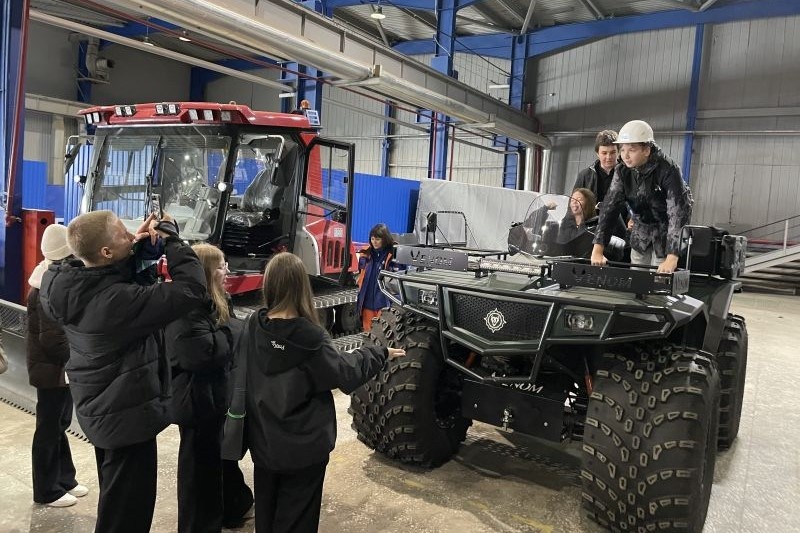 В ремонтно-механических мастерских и расположенном там же цеху экологической безопасности подростки с не меньшим любопытством осматривали причудливой формы машины для движения по снегу, воде, болотам. Различных видов и модификаций вездеходы на гусеницах, полозьях, огромных колесах, катамараны, рекультиваторы были представлены в ангаре в широком ассортименте. Школьники не только осматривали технику, но и ощупывали ее, забирались в кабину. И конечно, делали фото.