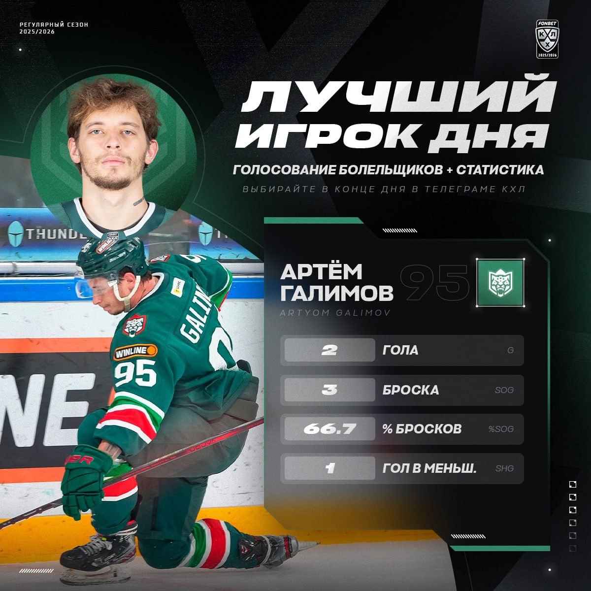 🟢 Самый опасный игрок в меньшинстве прошлого сезона (4 гола) начал новую охоту. У него 95-й номер, зовут Артём Галимов, мы предупредили.