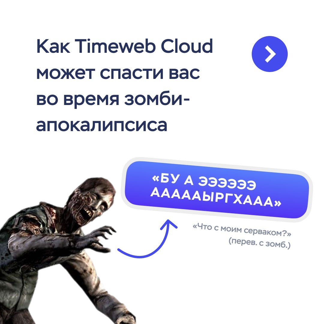 Да, облако помогает бизнесу работать стабильно в любых условиях. А что, если речь идет о зомби-апокалипсисе? В карточках — сценарии не для голливудского блокбастера, а для сервисов Timeweb Cloud, которые помогут выжить и даже отбить атаку зомбаков. Подготовиться заранее → 🧟