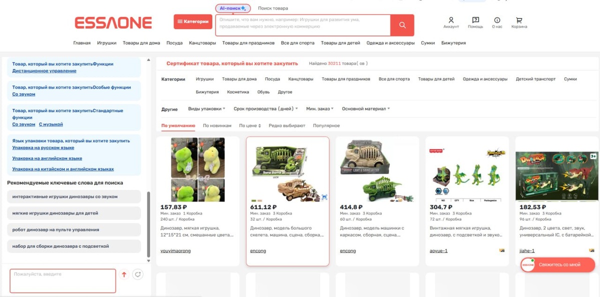 Дорогие клиенты! Интеллектуальный поиск ИИ уже доступен на площадке. Вы можете воспользоваться новой функцией из поисковой строки на главной странице сайта. Введите ключевые слова, описывающие нужный вам товар, а ИИ найдет товар, опираясь на вашу историю поиска и интересы. Результат поисковой выдачи – это полностью персонализированная рекомендация, которая поможет вам правильно подобрать товар, соответствующий вашему запросу. Заходите на сайт ESSAONE, пробуйте новые функции и выгодно закупайтесь вместе с нами! #essaone #закупкатовараиз китая #ФункцияпоисканабазеИИ