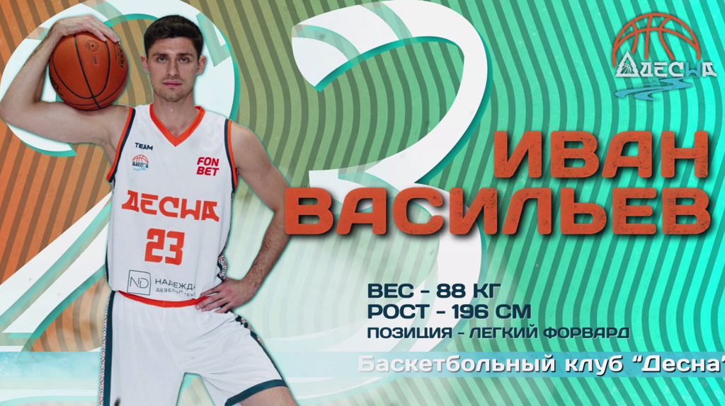 В новом сезоне 2025-2026 годов цвета брянского баскетбольного клуба «Десна» в чемпионате высшей лиги будет защищать новичок команды - воспитанника красноярского «Енисея» Иван Васильев. По своему амплуа он легкий форвард ростом 196 сантиметров.