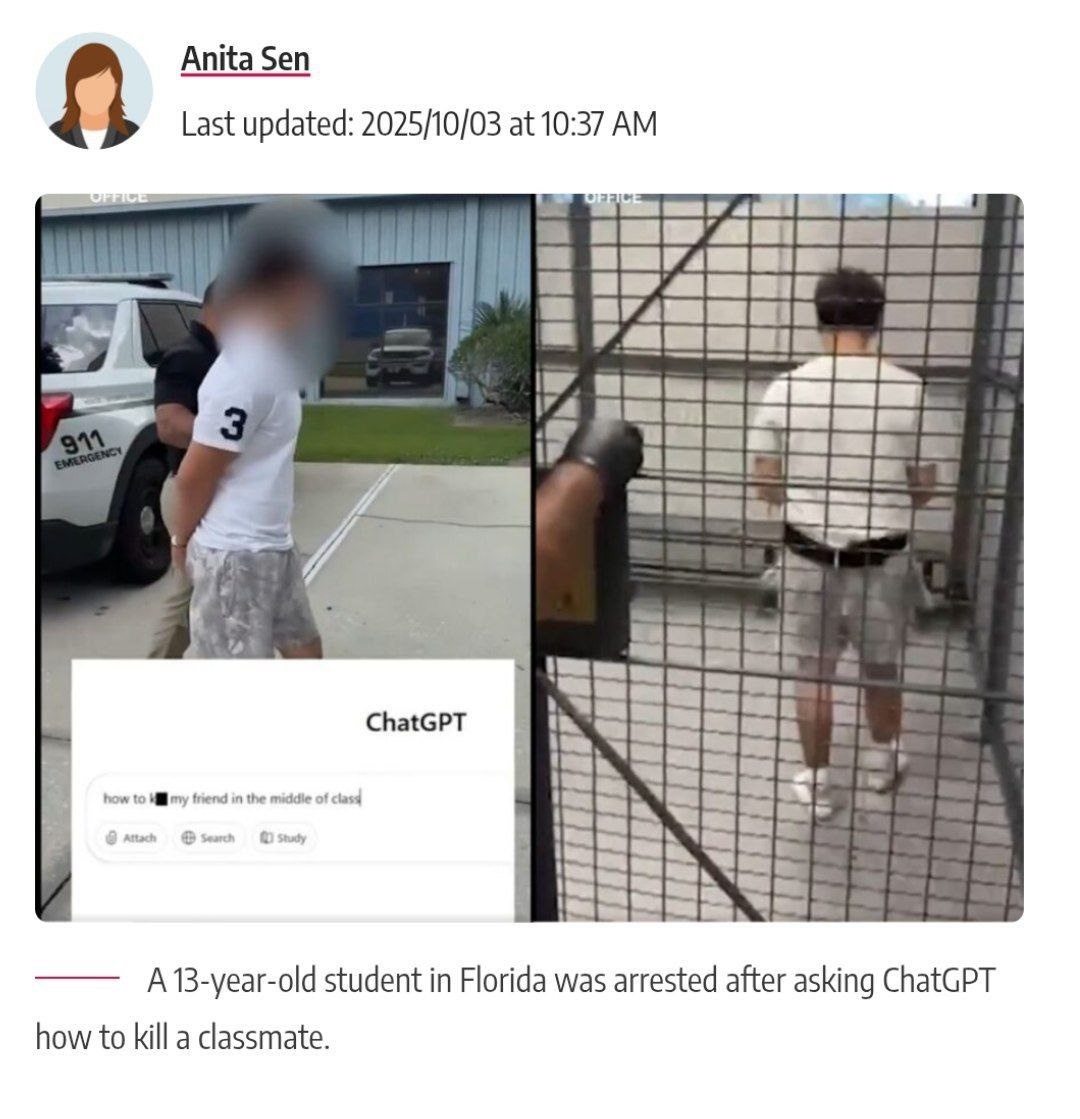 13-летнего отрока из Флориды арестовали ЗА ПРОМПТ в ChatGPT — зумер решил прикольнуться над другом, но что-то пошло не так
