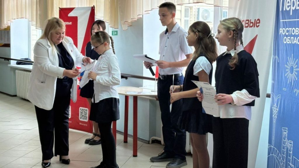 В первичном отделении Движения Первых на базе Верхнедонской гимназии состоялось торжественное мероприятие, на котором были подведены итоги работы за 2024-2025 учебный год. Более 60 школьников, 6 педагогов, представители отряда Юнармии и волонтёры отряда «ДоброДон» стали главными участниками встречи. На мероприятии присутствовала председатель местного отделения Движения Первых Ю.Белобровская. В торжественной обстановке Юлия Викторовна вручила юным гражданам, получившим в этом году свой первый паспорт, полезные подарки — обложки на паспорт. С приветственным словом к ребятам обратилась председатель первичного отделения Движения Первых С.Виноградова, которая подвела итоги проделанной работы в 2025-2026 учебном году и наградила самых активных Первых. В завершении мероприятия для ребят выступили активисты «Движения Первых» с танцевальным номером. Ранее сообщалось, что в ст.Казанской прошел фестиваль «Первые на старте»