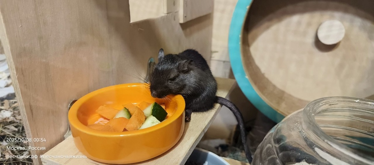 Красотка Буба с морковкой❤❤❤. Устала от беготни и присела у мисочки.😁 Сегодня Муж сделал им перегородку, засыпали нового наполнителя. Полчаса зависли рядом наблюдали с мужем и подругой их беготню и рытье новых нор, очень залипательно. #песчаночьяжизнь https://vk.com/video-223956750_456239598