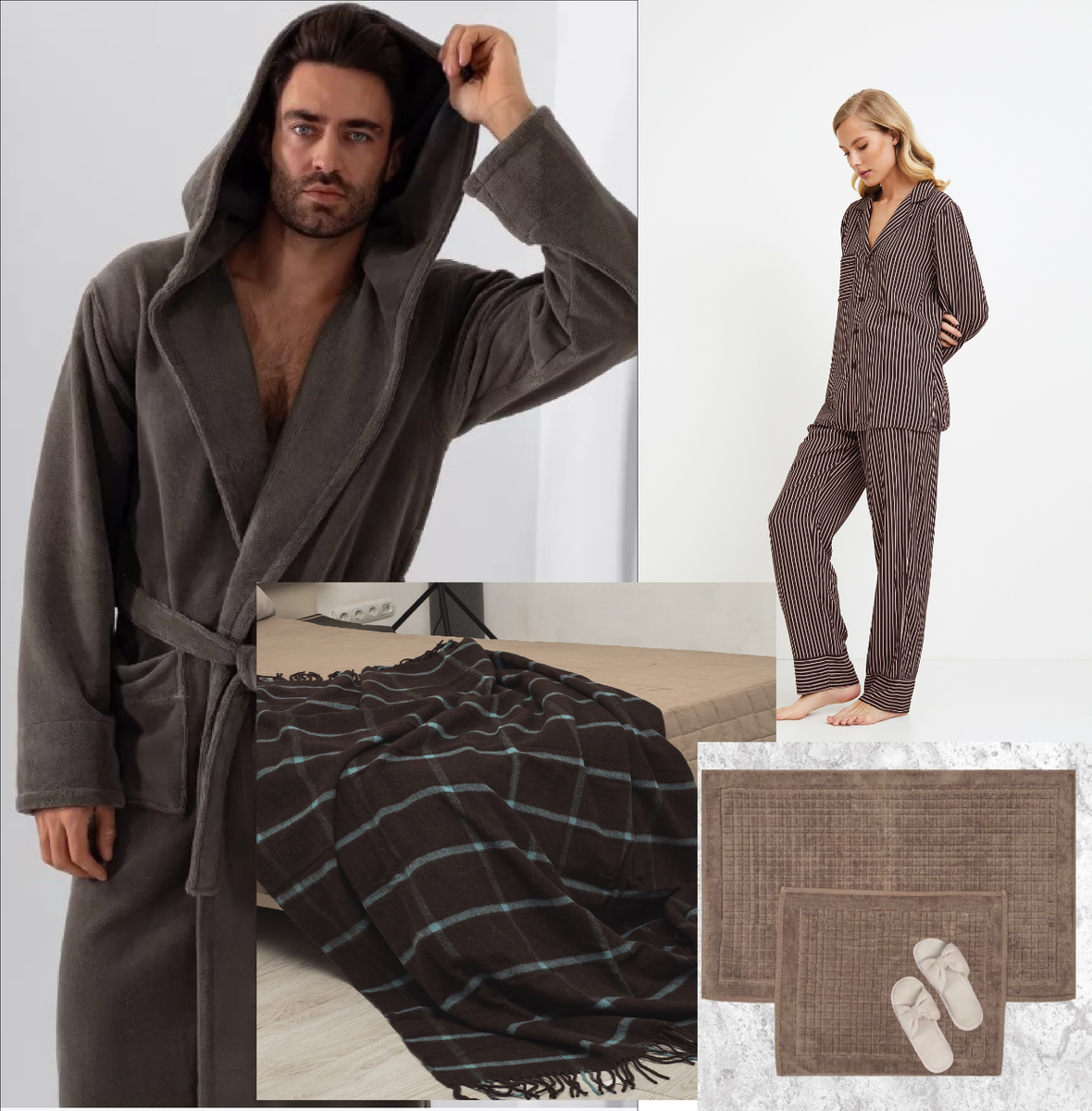 • Пижамы и халаты: Представьте себе пижаму из мягкого хлопка или халат из пушистой микрофибры в цвете "Горячий шоколад". Они мгновенно согреют и окутают вас чувством безмятежности.