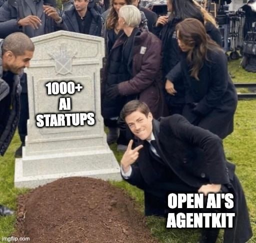 Вот такие мемчики уже бегают по западным соц.сетям. Речь про openAI AgentKit, который призван заменить n8n и еще 999 разного рода подобных стартапов. Парсинг вечен :) что меня радует, т.к. ИИ ну очень далеко от того, чтобы собирать цены, скажем, Пятерочки по конкретному магазину каждый день... Русский ИТ бизнес