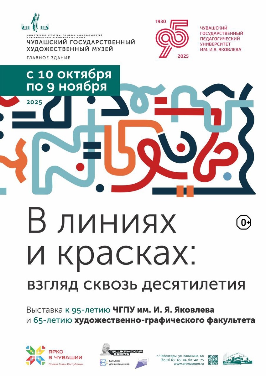 🖼В эту пятницу в 16:00 в Чувашском художественном музее открывается юбилейная выставка дипломных и творческих работ, посвященная 65-летию художественно-графического факультета и 95-летию ЧГПУ им. И.Я. Яковлева. За долгие годы плодотворной работы факультет воспитал более 5 тысяч специалистов, большинство из которых стали подлинными профессионалами своего дела. Важная роль в культурной жизни Чувашии, формировании ее эстетического облика принадлежит профессиональным художникам, скульпторам, дизайнерам, сделавшим свои первые творческие шаги в стенах ХГФ. Экспозиция юбилейного вернисажа – своеобразная ретроспектива творческой жизни факультета, его развития с момента основания до сегодняшних дней. Выставка из более 200 произведений живописи, графики, скульптуры, декоративно-прикладного искусства и дизайна представляет дипломные и творческие работы выпускников разных лет, а также творческие работы преподавателей факультета. Вскоре станет доступна Пушкинская карта.