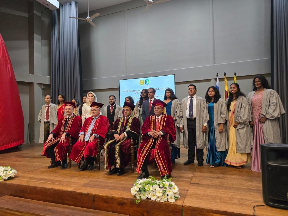 Рабочий визит делегации Уральского государственного экономического университета в Шри-Ланку продолжается. На следующий день после торжественной церемонии вручения дипломов первым выпускникам Центра русского языка проректор по воспитательной работе и молодежной политике Роман Краснов провел деловую встречу с руководителем представительства Россотрудничества в Шри-Ланке Марией Поповой. В начале встречи Роман Валерьевич от имени руководства УрГЭУ выразил глубокую признательность Марии Поповой за всемерное содействие в открытии Центра русского языка в Коломбо в 2024 году и постоянную поддержку действующих проектов университета.