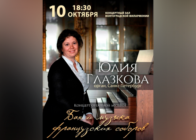 Центральный концертный зал Волгограда приглашает на концерт «Бах и музыка французских соборов». Исполнительница – гостья из Санкт-Петербурга, замечательная органистка Юлия Глазкова. Обладательница специального приза Баховского фестиваля в Монреале за лучшее исполнение произведений Иоганна Себастьяна Баха не только покажет музыку, но и расскажет о великих композиторах, поделится историями появления органных шедевров. Прозвучат также фрагменты органных произведений французского композитора Луи Николя Клерамбо и композиторов парижской органной школы. Концерт состоится 10 октября, начало в 18.30. Знак информационной продукции производителем не присвоен.