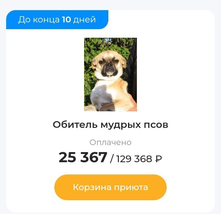 ❤️Дорогие друзья!❤️ Напоминаем, что у нас открыта корзина на сайте BUDDY DINNER | Фермерский корм для собак и кошек и мы очень просим вас, наши дорогие, принять участие в выкупе корма для наших подопечных🙏. Благодаря вашему активному участию уже были выкуплены и доставлены в приют 7 мешков с кормом (140 кг!!!). Акция продолжается и вы можете внести любую сумму от 10 рублей в счёт оплаты корма и он будет доставлен бесплатно в приют! На сегодня внесено 25 367 руб. (т.е. полностью выкуплено 3 мешочка корма по 20 кг), а до завершения акции осталось всего 10 дней. Ваша помощь — это прямой завтрак или ужин для наших дорогих хвостиков. Пожалуйста, подключайтесь к акции🙏. Корм отличный и нашим собачкам очень нравится. Ссылка на нашу корзину: https://www.buddydinner.ru/pomosch-priutam/lxwb612pket90vdgo4fs/ #ОбительМудрыхПсов